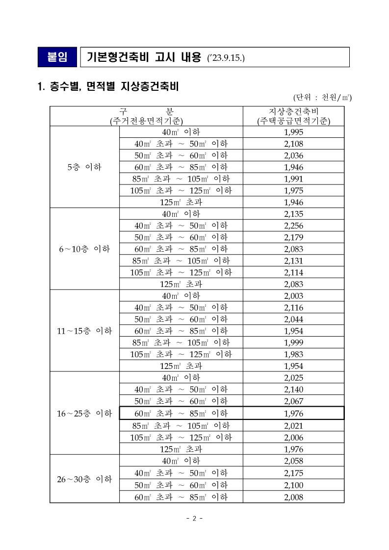 분양가상한제 기본형건축비 9월 정기고시(주택정책과)